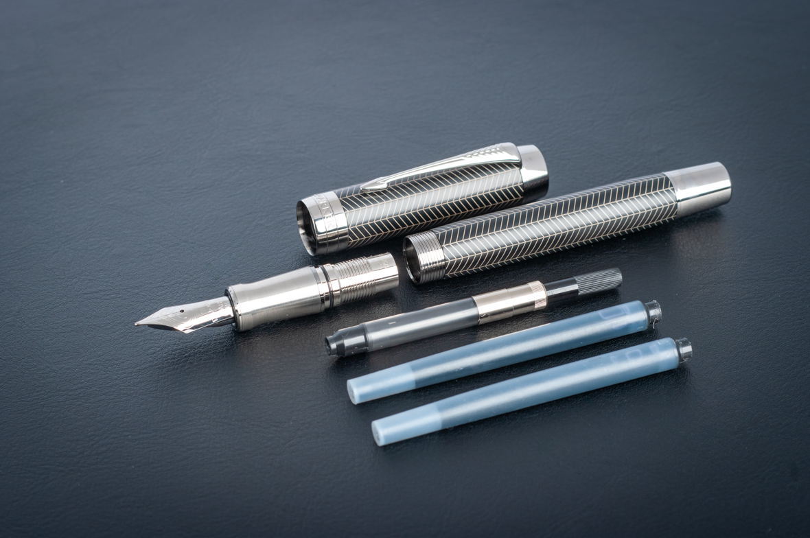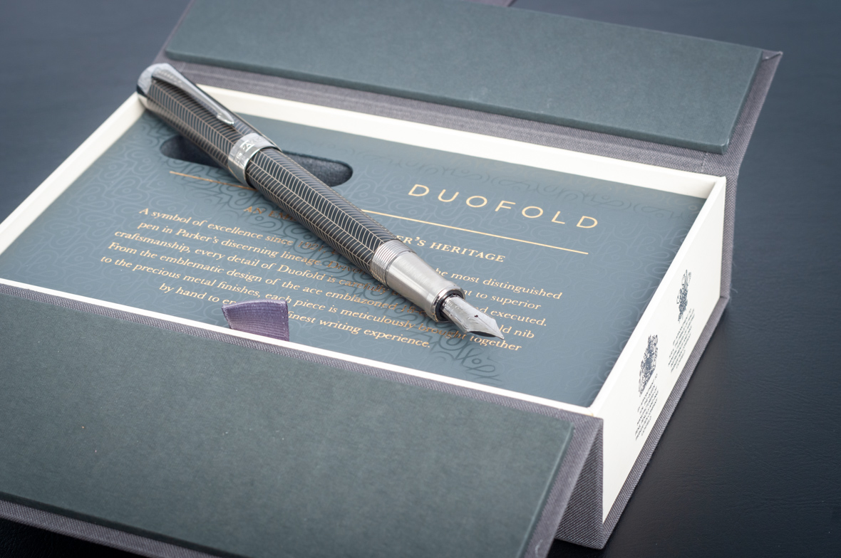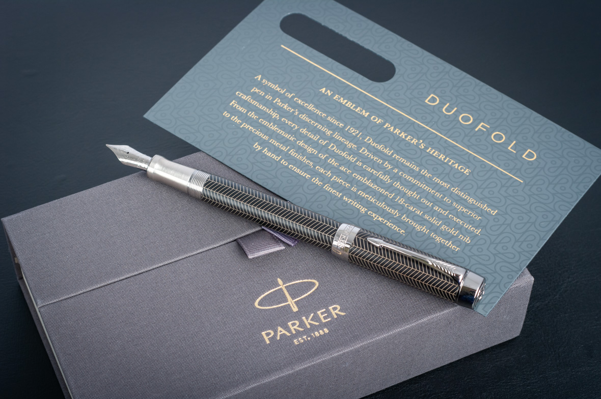 Перьевая ручка Parker Duofold Prestige Centennial Black Chevron CT от официального дилера Parker в Керчи. Вы можете дополнительно заказать гравировку, которая подчеркнет Вашу оригинальность и придаст памятность статусному подарку. Все ручки Паркер поставляются в фирменном футляре.